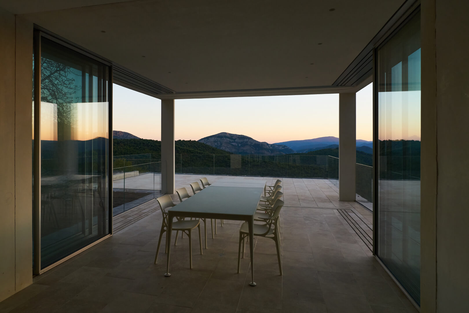 “Like a jewel amidst the landscape, this glass box should be able to disappear to leave the widest possible opening to the view. After several studies of opening typologies, it was the Turnable system from Vitrocsa that proved to be the only system meeting this intention.”